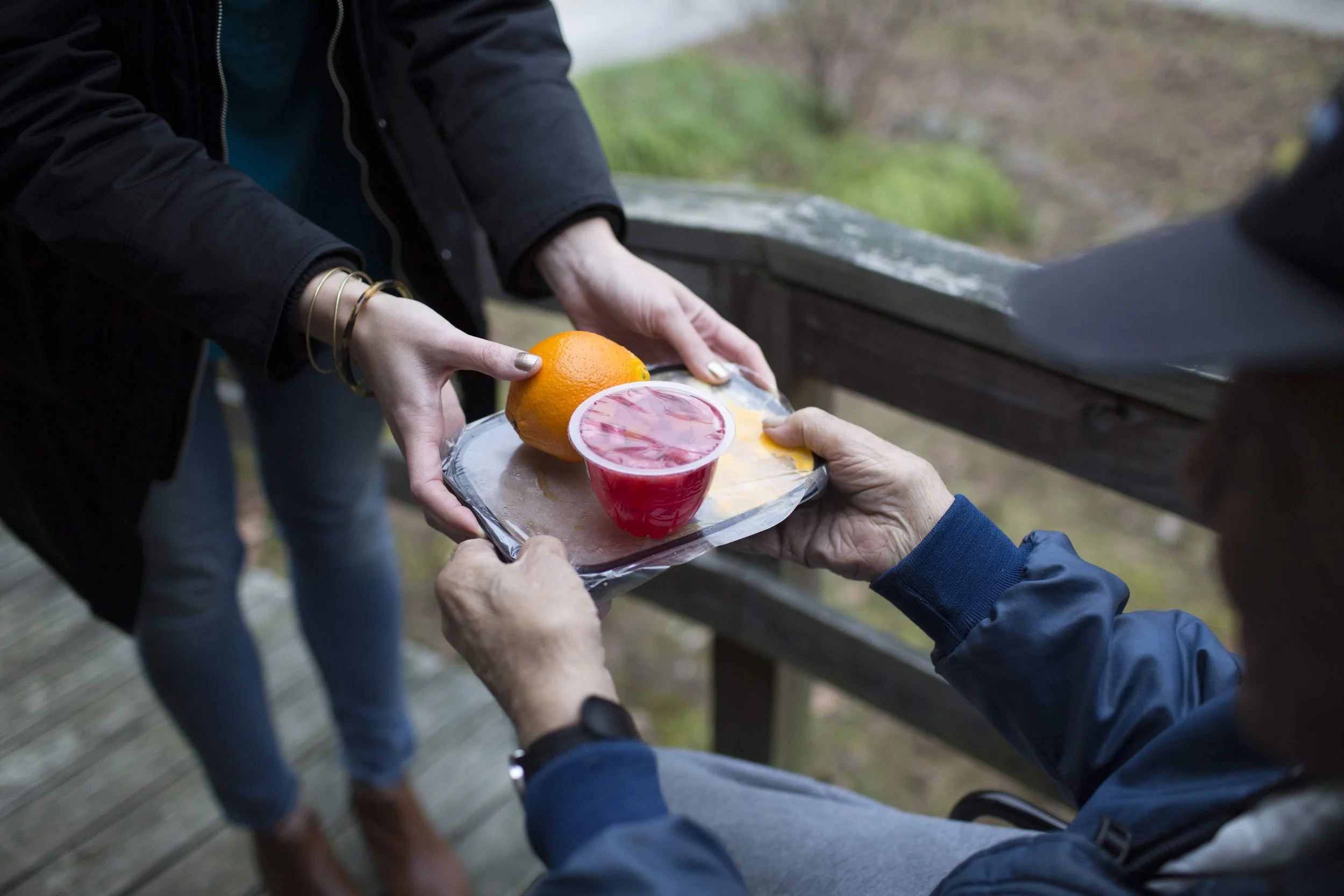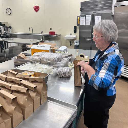Nutritious, made-from-scratch meals delivered Monday through Friday between 11am and 1pm by caring volunteers. Each meal provides approximately 650 calories and one-third of the adult daily recommended dietary allowance, including protein, starch, vegetable, fruit, bread, and milk or juice. Frozen meals are also delivered once a week, and clients may order additional frozen meals for evenings and weekends.